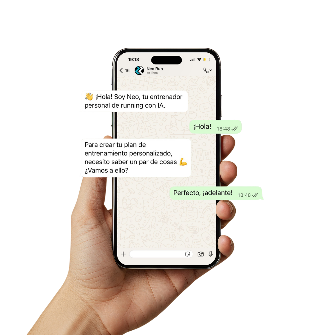 Neo procesa tu información y te envía un plan de entrenamiento totalmente personalizado y estructurado, listo para empezar inmediatamente.